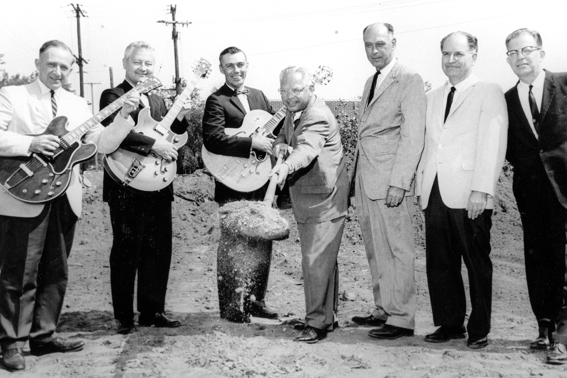 ▲ 圖正中間、持鏟者為 Gibson CEO Ted McCarty,Les Paul、Flying V、Explorer 等諸多傳奇琴款,背後都可見他的身影。(圖片來源:PRS Guitars 官網)