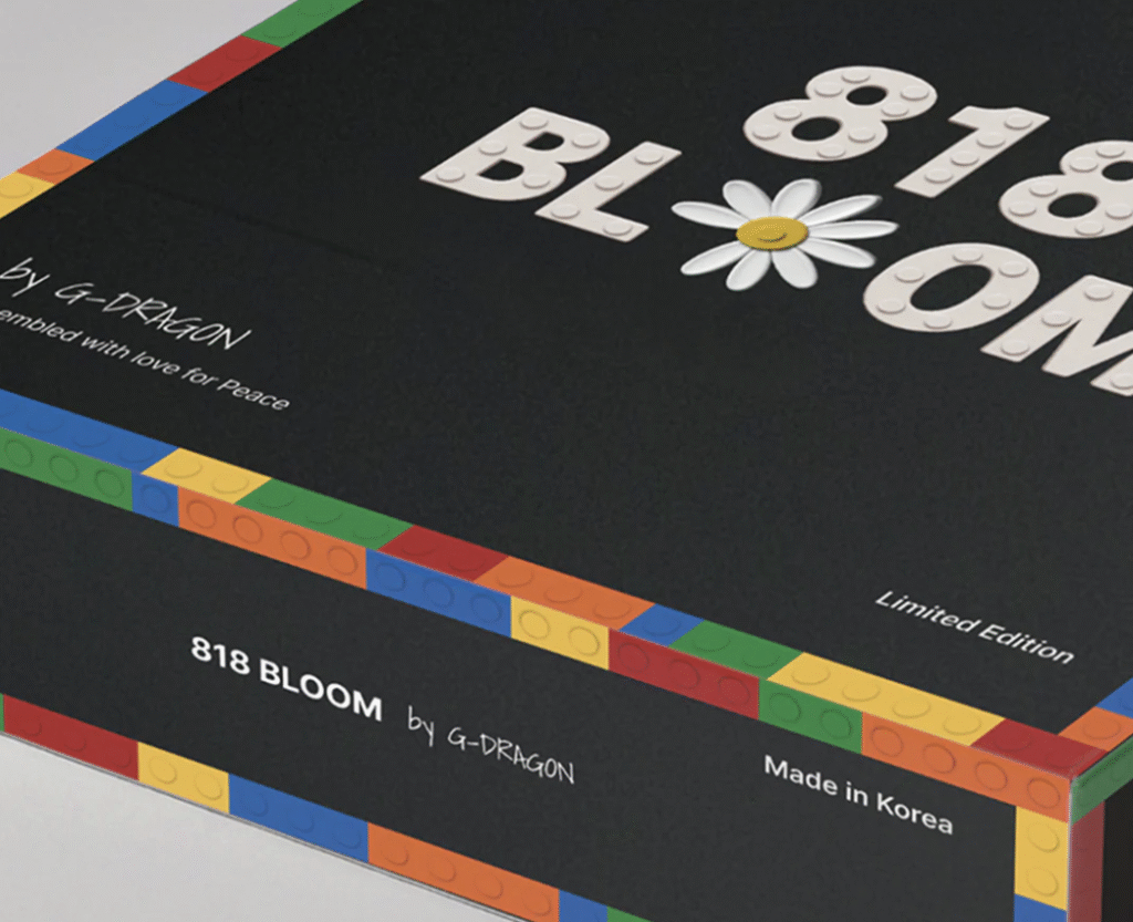 這款「GD 818 BLOOM」積木,以 G-DRAGON 所創品牌 PEACEMINUSONE 中的標誌性「小雛菊」圖樣為核心。從花瓣色調、整體構圖、到積木組件的配置,都能感受到他對於時尚、美學與生活的觀照。