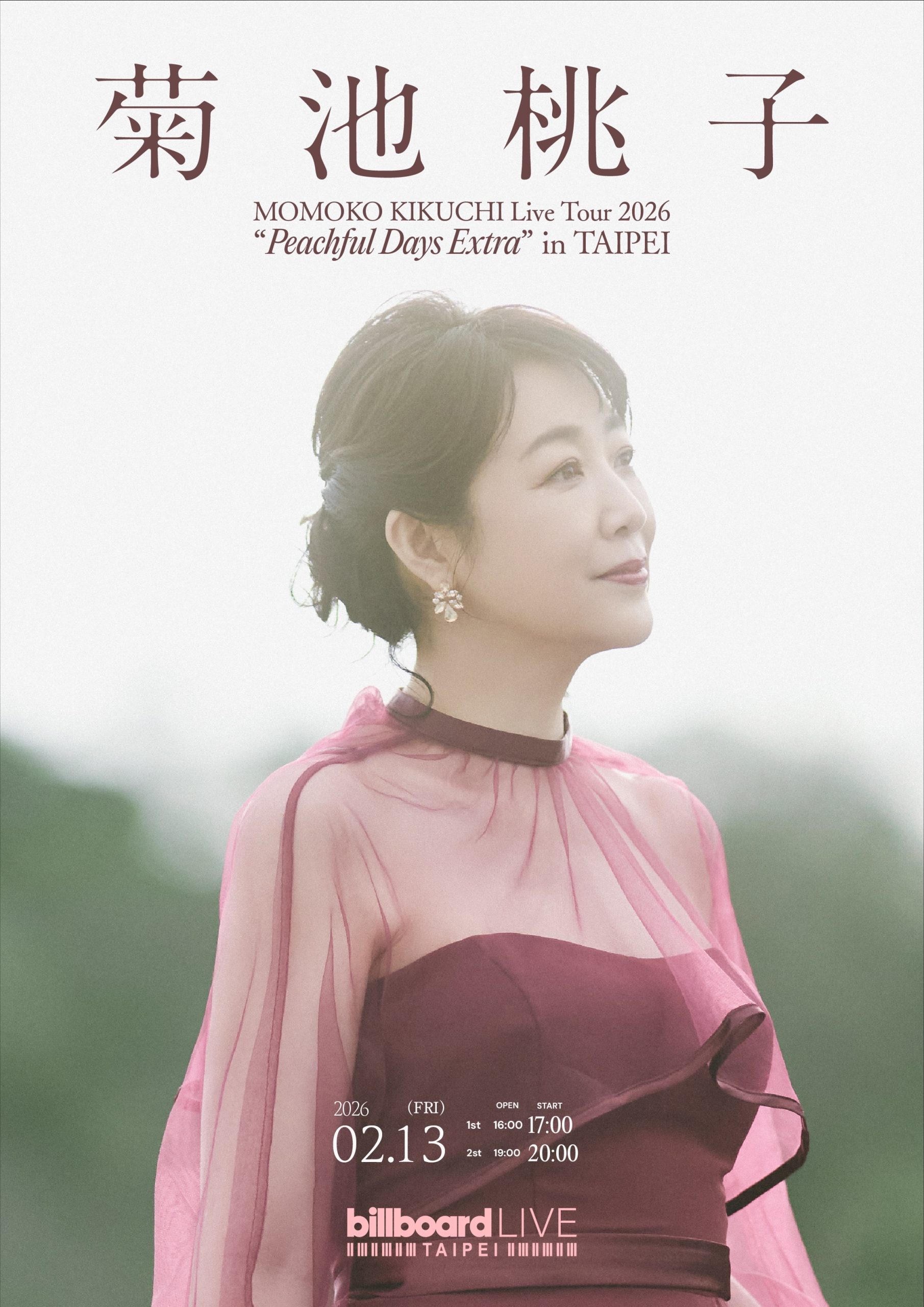 80年代日本流行樂壇的代表之一 菊池桃子(MOMOKO KIKUCHI),將於2026年首次登上台北舞台,帶來「Peachful Days Extra」特別公演。1984年以電影出道,同年以歌手身分一舉走紅;17歲即於日本武道館開唱,奠定超人氣偶像地位,並以〈卒業 -GRADUATION-〉創下 ORICON 周榜冠軍,之後更連續七作勇奪冠軍。出道後獲得多項日本重量級音樂獎項,成為一代經典代表。她的音樂多由日本作曲家 林哲司 打造,在80年代偶像樂壇中獨樹一幟。