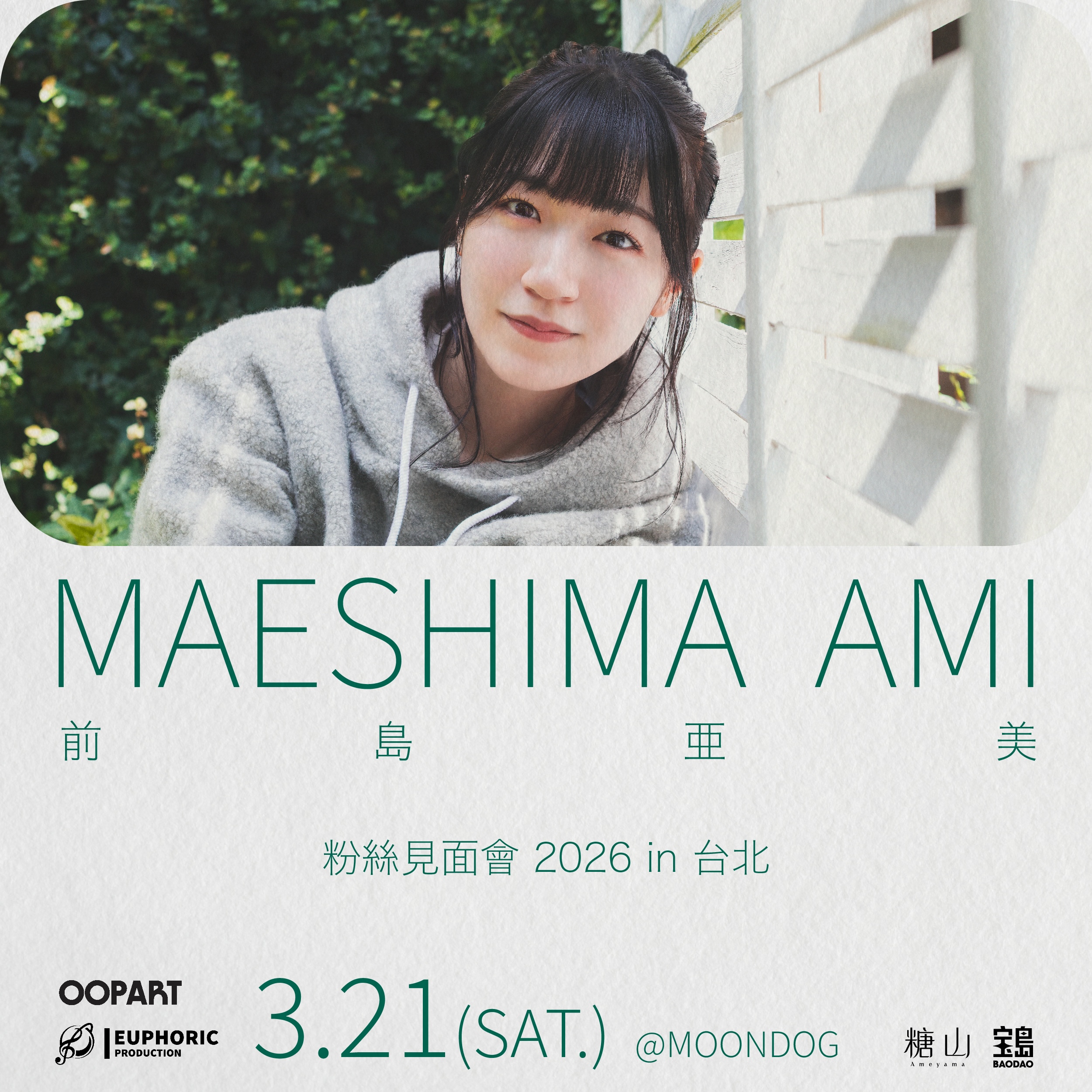 今年三月,前島亞美將首度來到台北,帶著最真誠、最貼近粉絲的模樣,與台灣粉絲面對面相見。這場見面會不只是一次活動,更是一段珍貴的相遇時刻,她也將親自回應每一份長久以來的陪伴與支持。誠摯邀請你,一同迎接 amita 持續進化的每一步。