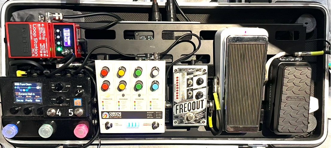 Walrus Audio Canvas Stereo Dual Line Isolator / D.I.、BOSS RC-5、Line 6 HX Stomp、Hologram Electronics Chroma Console、DigiTech FreqOut、Xotic XW-1 Wah、Jim Dunlop DVP4 Volume (X) Mini Pedal