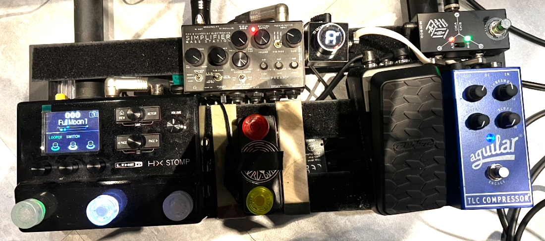 Line 6 HX Stomp、Jim Dunlop DVP4 Volume (X) Mini Pedal、Aguilar TLC Compressor、DSM & Humboldt Electronics SIMPLIFIER BASS STATION、SWIFF AUDIO C20 Mini Pedal Tuner、ABY Box Line Selector AB Switch