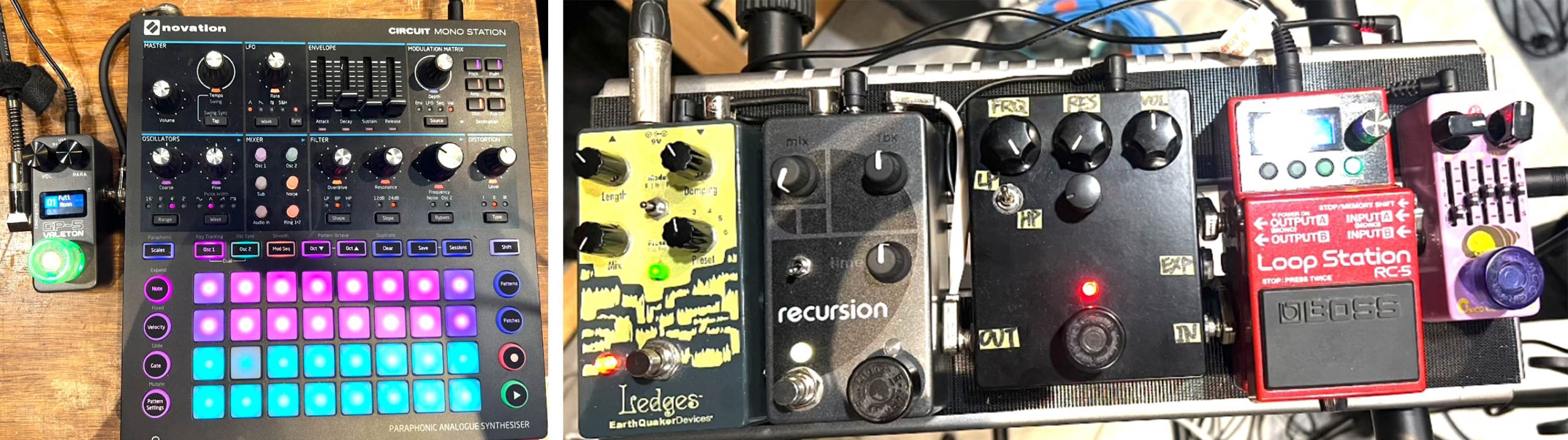 Shure SM57、EarthQuaker Devices Ledges、murmur Signal Lab Recursion Delay、Tsomokos Audio MS-20 Analog LP & HP Filter、BOSS RC-5、Effects Bakery Choco Cornet EQ