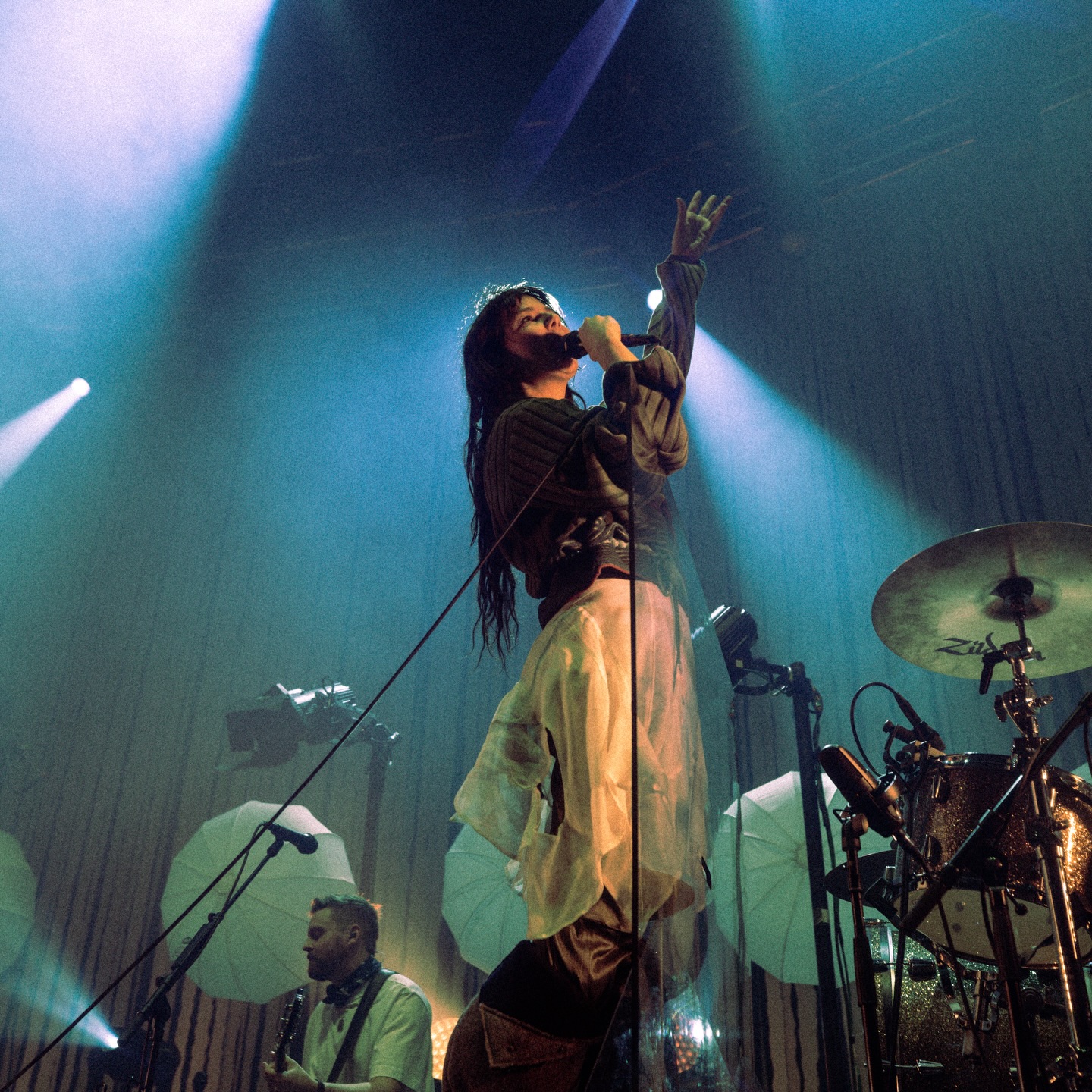 〈Mouse Parade〉沒有高亢的歌聲,沒有磅礴的配樂,以細微的琴音和低鳴的演唱方式模擬群鼠。Nanna 形容這首歌「有點像個異類」,但與〈The Block〉的銜接對比完美體現了整張專輯在情感上的雙重特性。絕望中看見希望,哀傷裡透出一抹微光,愛與痛苦始終並存。現場表演中,團員圍成一圈聚集在一盞暖黃的燈光下,具象化了歌曲中互相依偎的集體感。有別於樂團早期呼喚大自然的壯烈,這段表演呈現了一種更具人性溫度的低語,為這場關於愛與痛的巡演寫下了一段極具詩意的註腳。