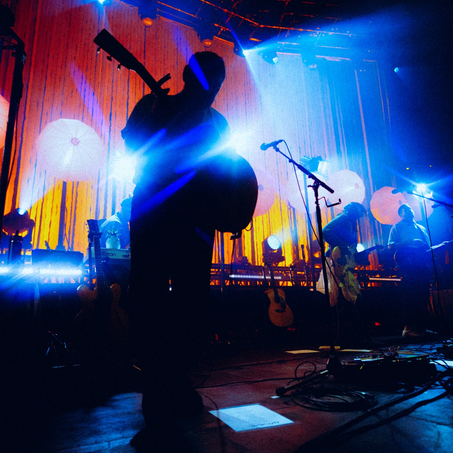 演出現場可見舞臺上十盞大大的燈籠罩燈光,隨著演出曲目變換顏色和高度,營造炫目迷離的氛圍。開場曲〈Television Love〉後的〈Dream Team〉以藍光為主色調,歡快的旋律中講述關係裡的好與壞、混亂崩潰與相互支持;團員打趣介紹關於「一條魚」的曲目〈Tuna in a Can〉,在一片紫色光暈中探索關於成長和自我的印記。