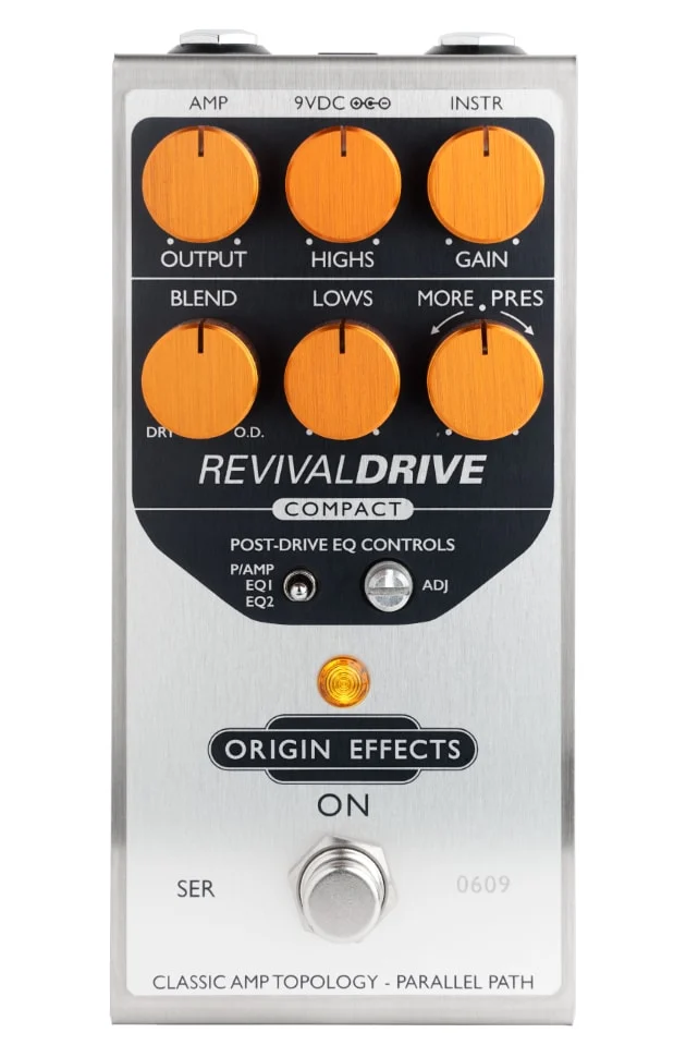 知名的效果器品牌都會有自己代表的破音音色,RevivalDRIVE 系列效果器將早期以音量控制破音量的音箱為復刻對象,但和現代大量數位甚至類比前級模擬音色的方式不同,Origin Effects 在效果器中復刻了真空管音箱的訊號路徑:從 Preamp、Phase Inverter、Power Amp 響應、Sag 到變壓器特性的影響,讓 RevivalDRIVE 系列不只發出如真空管音箱的音色,在彈奏回饋感上也更接近真空管音箱的特性,這樣的設計思路也可以完全套用在它們的貝斯音箱模擬類產品上。
