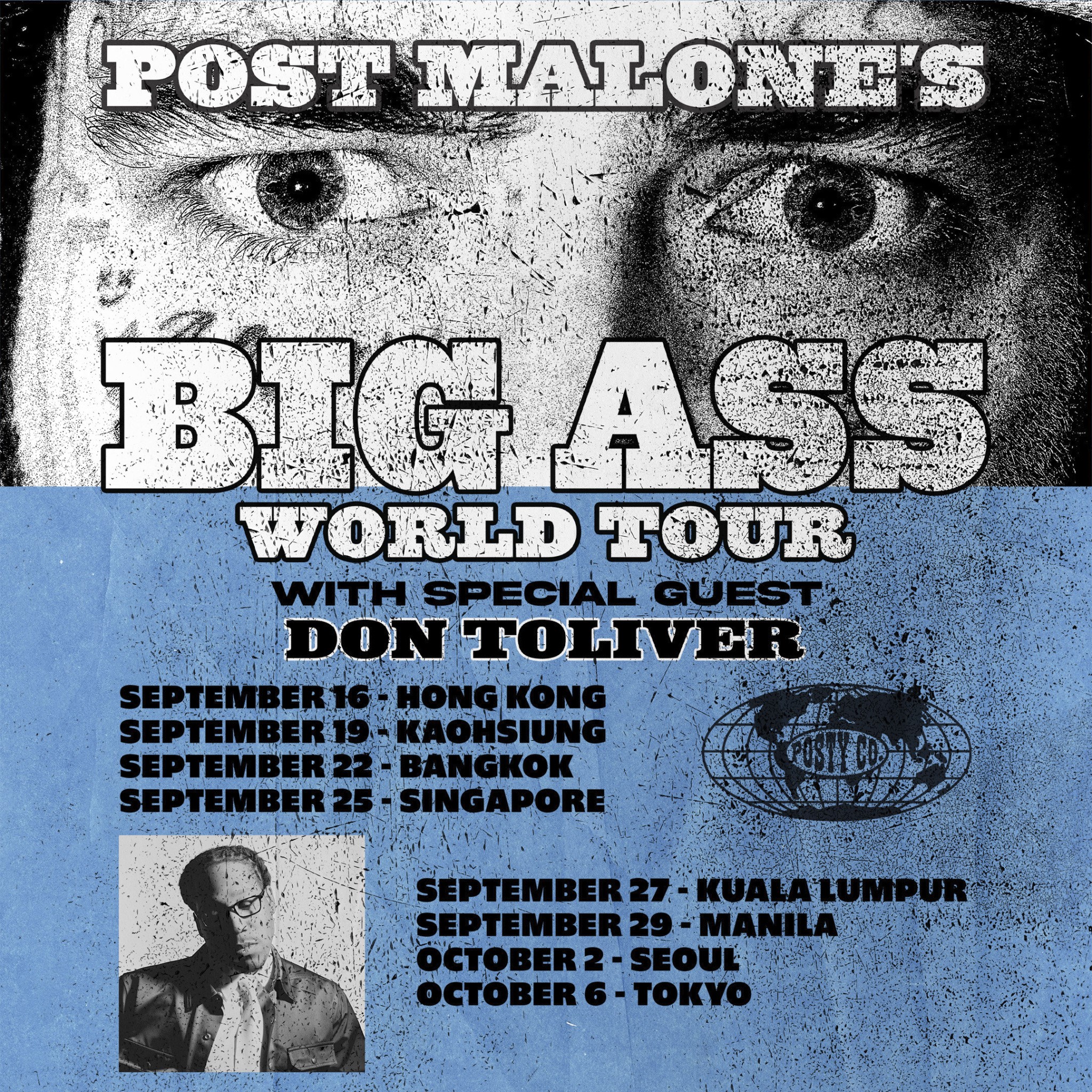 世界巡迴「Post Malone Presents The BIG ASS Stadium World Tour」亞洲場次唱遍香港、曼谷、吉隆坡與首爾等亞洲指標城市,9月19日,Post Malone 將登上高雄世運,帶來一連串生涯代表作,橫跨流行、R&B、嘻哈、搖滾等多元曲風,全面展現其無可取代的現場爆發力,更力邀破百億串流嘻哈戰將 Don Toliver 助陣。9月19日,高雄不只是巡演一站,而將成為高雄史上最瘋的一晚。