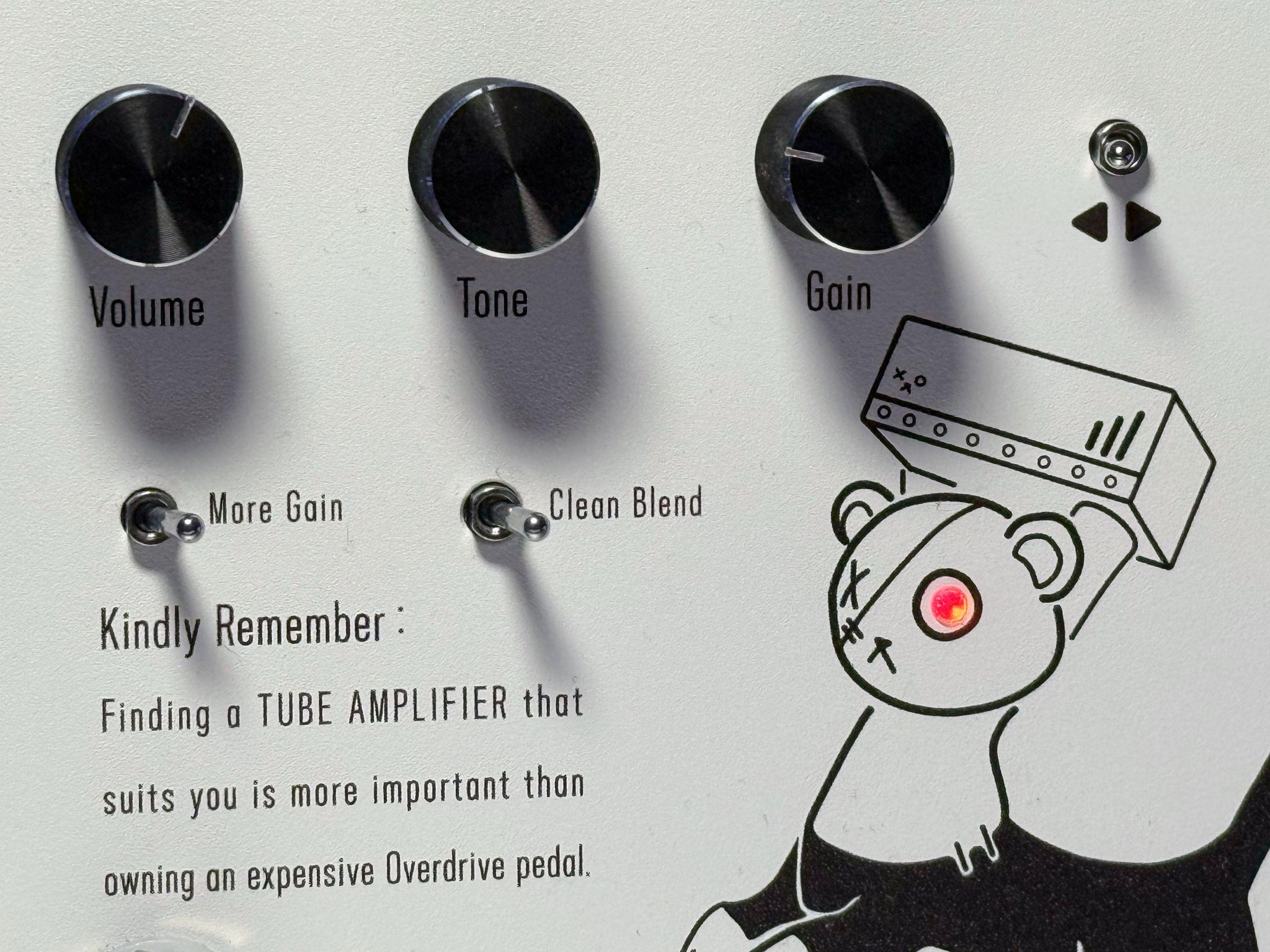 效果器左邊是 Klon Centaur 類的破音效果,提供音量、音色與破音量選擇,還有更多 Gain 模試與開關 Clean Blend(破音中混有乾訊號) 兩個切換開關。右側則提供 3-Band EQ 與一個音量鈕的 Boost 效果器;破音與 Boost 兩個效果可以獨立開關,還能透過中間的撥桿切換兩者的排序。