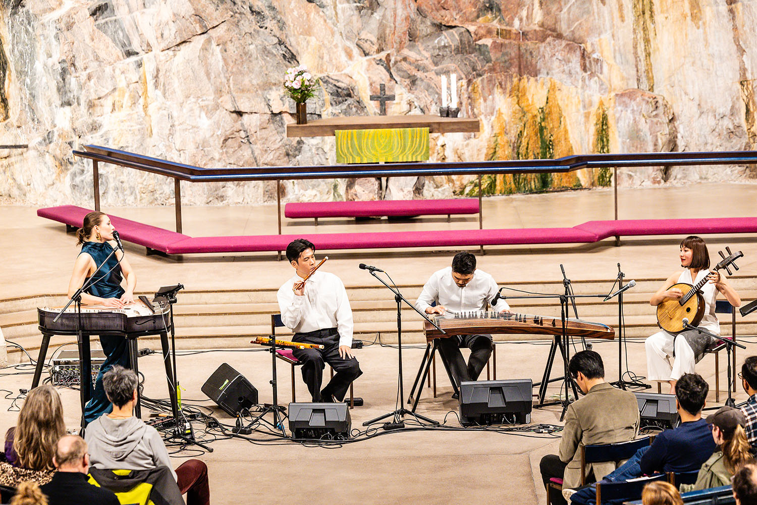 岩石教堂的殘響,讓我們彷彿置身天堂⋯⋯圓潤透亮音色,被打磨得更為純淨,而教堂本身的平靜與神聖感,也瞬間提升整體舞臺效果。東方音樂在這樣西方文化色彩濃厚的場域中飄揚,當下的感官體驗可說是前所未有。