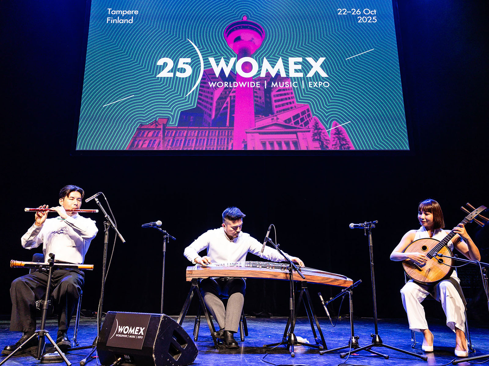 跨界國樂三重奏「三個人」於今年十月底,成為首位登上 WOMEX(World Music Expo)世界音樂博覽會官方舞臺演出的臺灣音樂人。他們以精湛的演奏技巧與細膩的編曲,將當代跨界音樂精彩呈現,結合國樂、原住民古調、傳統民謠與流行節奏,展現新一代臺灣音樂的創作能量,讓臺灣聲音躍上世界舞臺。